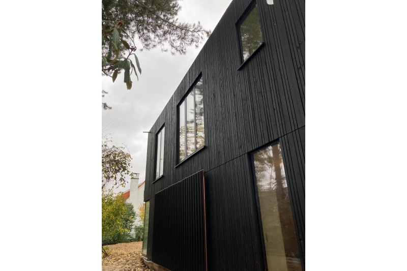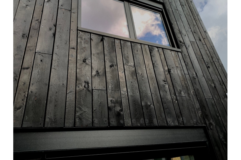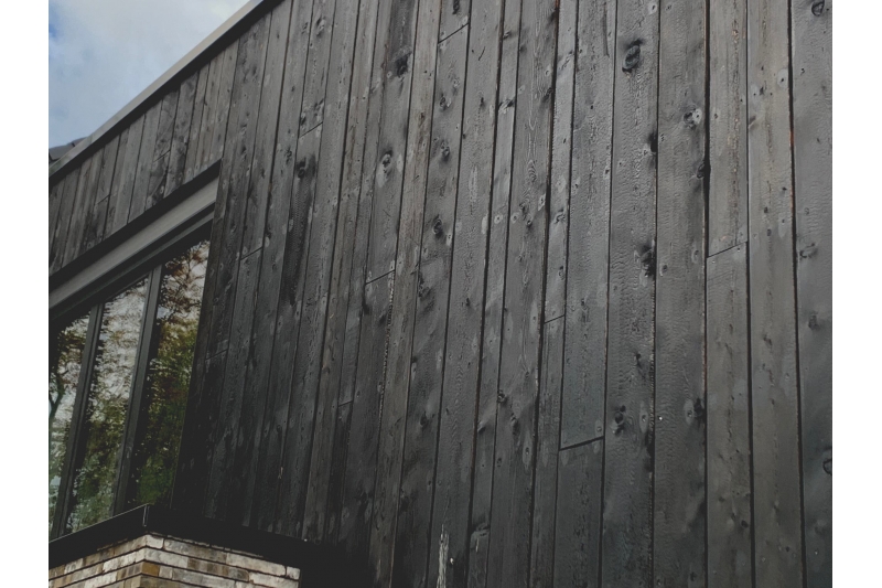 Le bardage meleze brule de Wood-Bardage offre une facade exterieure d'exception, alliant l'esthetique ancestrale du bois brule a la robustesse du meleze de pays.